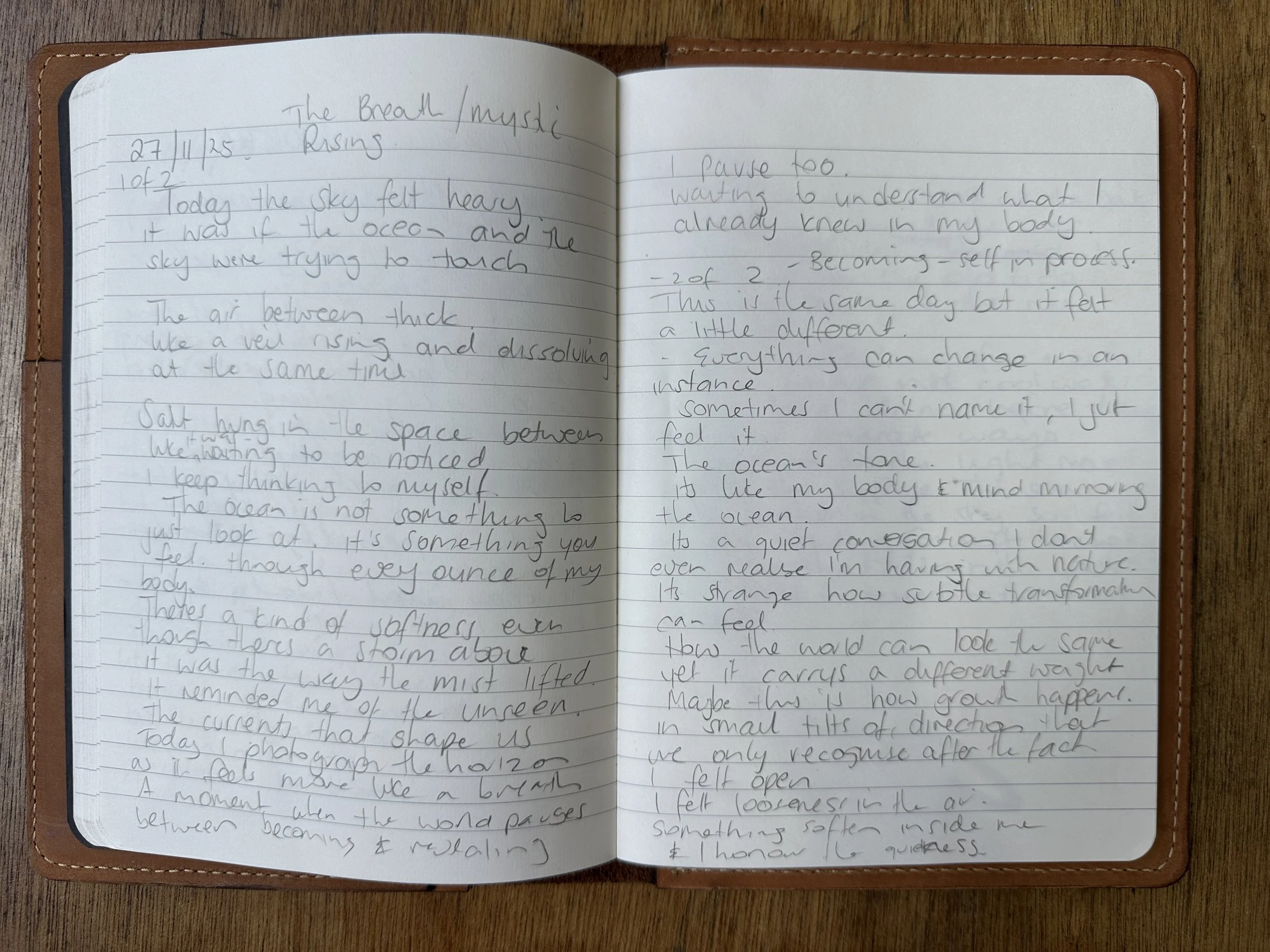 Writing operates here as a parallel practice: a way of listening, slowing down, and giving form to what the ocean stirs but does not always reveal.